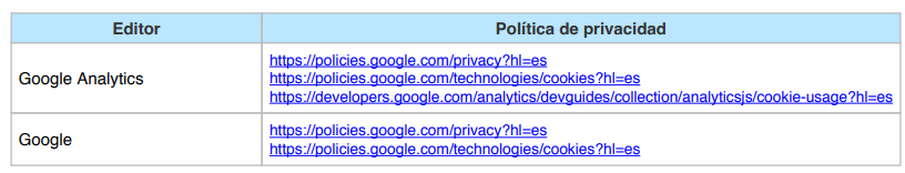 - Cookies de terceros: son aquellas que se envían al equipo terminal del usuario desde un equipo o dominio que no es gestionado por el editor, sino por otra entidad que trata los datos obtenidos través de las cookies. En el caso de que las cookies sean servidas desde un equipo o dominio gestionado por el propio editor, pero la información que se recoja mediante estas sea gestionada por un tercero, serán consideradas como de terceros.